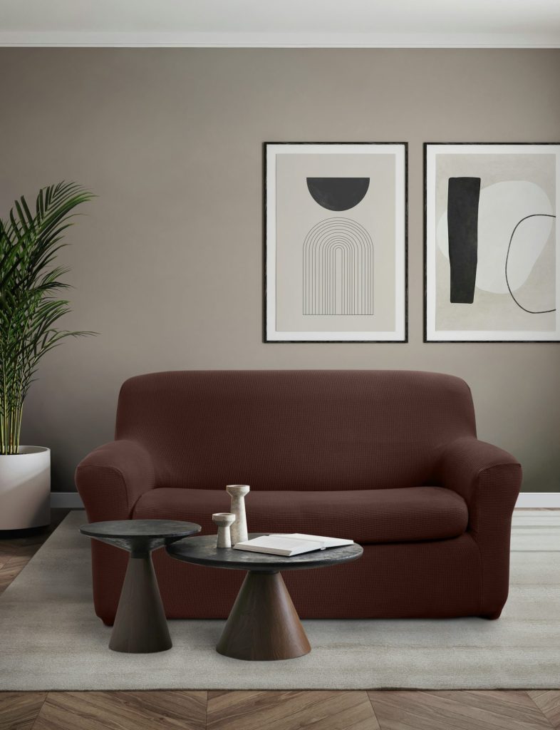 Poncho Duo Siena e Poncho Comfort sono copridivani e copripoltrone in cotone ed elastan, estensibili e facili da applicare senza stiratura. Poncho Duo, erede del primo copridivano bi-estensibile brevettato da Gabel nel 1992, include copricuscino e sei varianti di colore. Poncho Comfort, in tinta unita, si adatta perfettamente a braccioli, schienale e cuscini, ideale per rinnovare l’arredo del living con un semplice gesto.