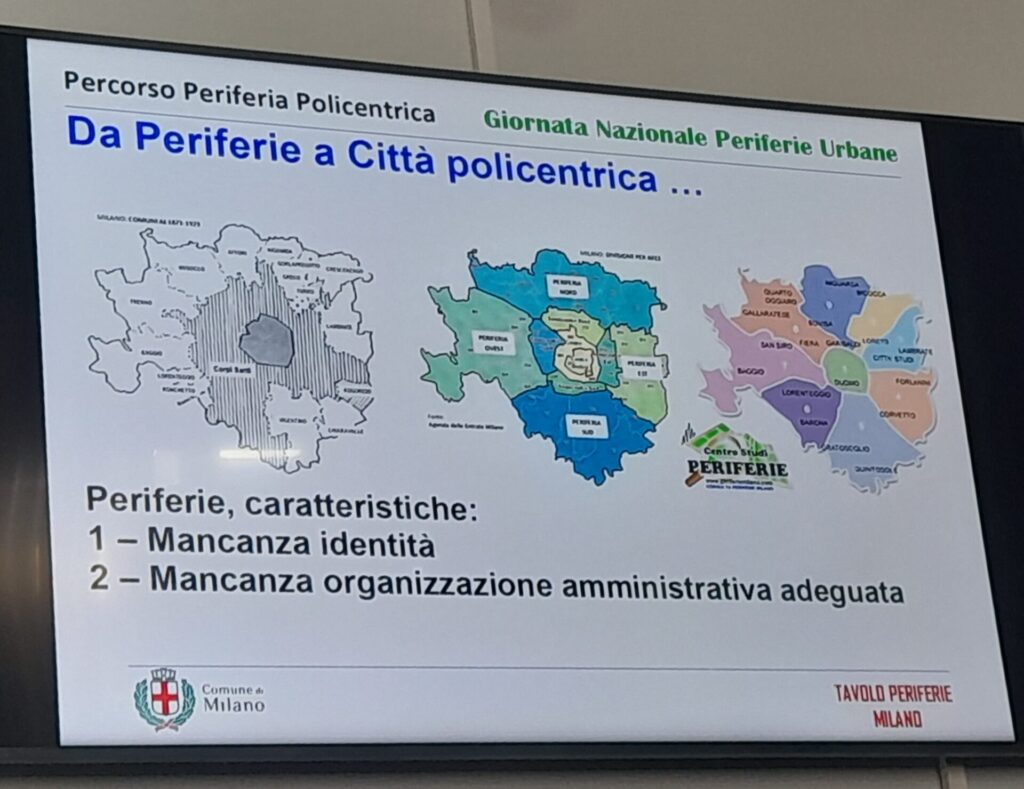Nell’ambito della Giornata Nazionale delle Periferie Urbane, nel pomeriggio di martedì 24 giugno scorso, presso la Sala delle Commissioni di Palazzo Marino, 2 di Milano si è svolta l’interessante Tavola rotonda organizzata e promossa dal Tavolo Periferie Milano e dalla Presidente del Consiglio comunale di Milano coordinato dal Coordinatore della Consulta Periferie Milano, Walter Cherubini il tema affrontato è stato: “Da Periferie a Città policentrica, come?.