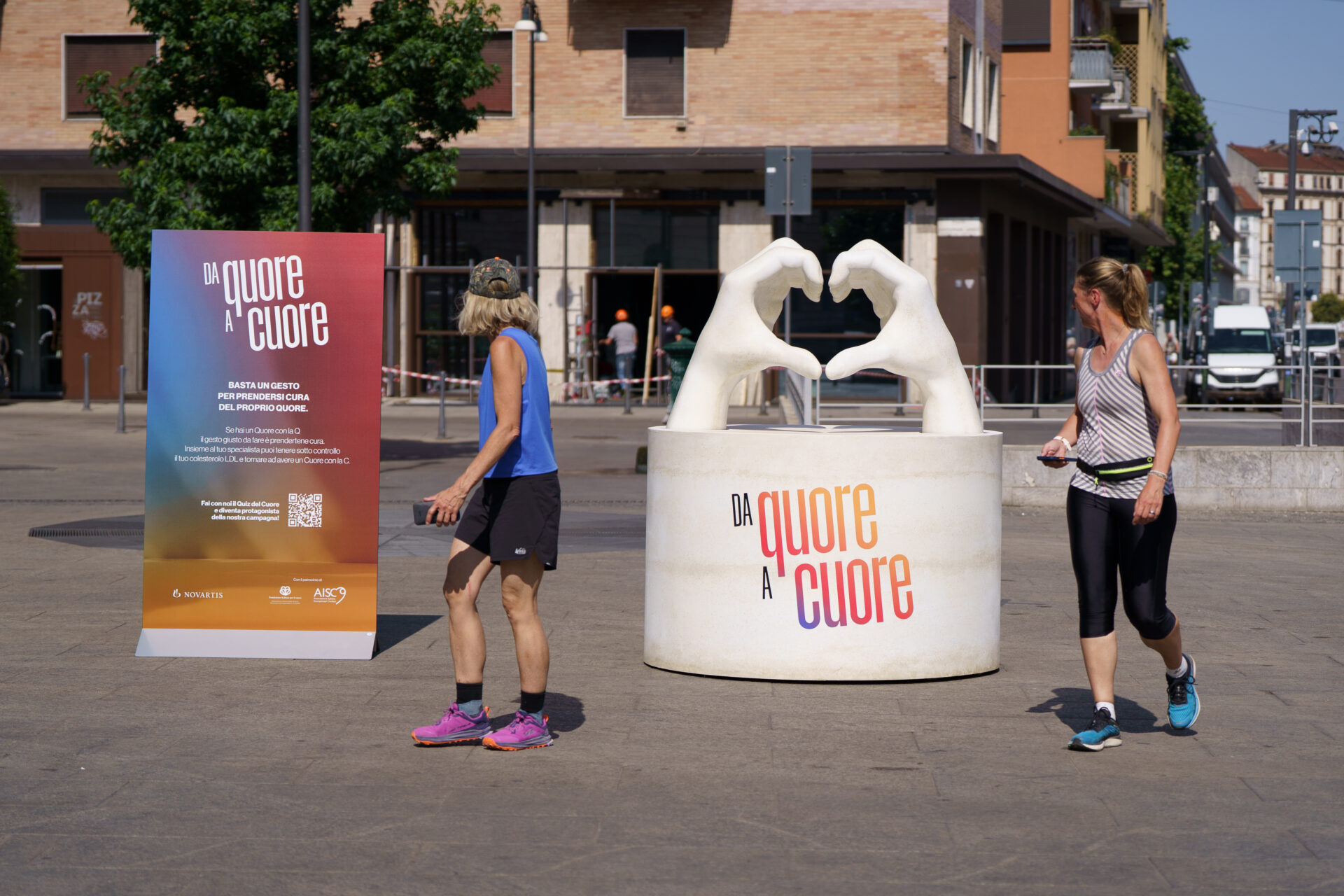 Succede a Milano, in Piazza XXV Aprile, proprio un lunedì – il giorno della settimana in cui si registra il maggior numero di infarti – con l’installazione di due mani disallineate che, con “un gesto”, si incastrano fino a formare un cuore perfetto. Un invito visivo a prendersi cura del proprio cuore, ogni giorno.