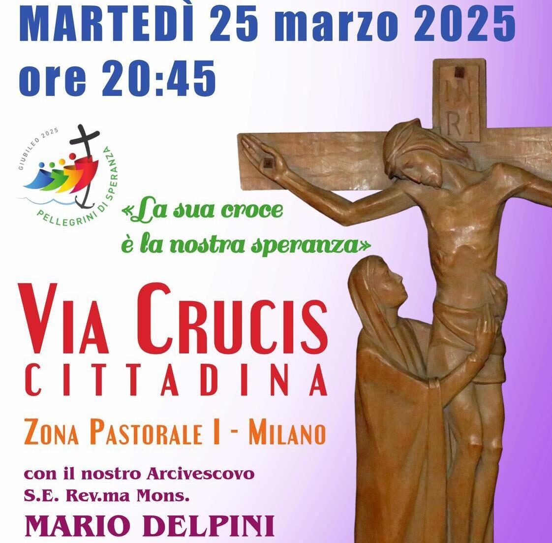 Quest’anno 2025 la Chiesa milanese ha voluto la via Crucis cittadina nella Zona Pastorale I del Quartiere QT8, presieduta da S. E. l’Arcivescovo Monsignor Mario Delpini, partita dalla Chiesa Santa Maria Nascente e conclusasi al Monte Stella.