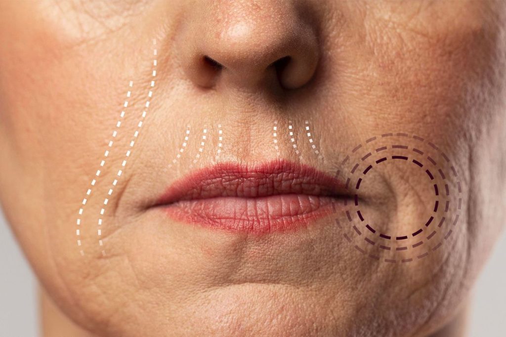 Inoltre la lassità cutanea porta – sempre in questa area – al “codice a barre” (zona al di sopra del labbro superiore), a creste di gallo (escrescenze), ad una perdita della definizione del profilo mandibolare, a labbra rimpicciolite, nonché alla formazione di rugosità su collo e décolleté e anche alla formazione del “doppio mento”. Questi inestetismi non sono semplici da trattare, ma negli ultimi anni la Medicina Estetica ha messo a punto tecniche sempre più innovative e sempre meno invasive. Inoltre non va dimenticato che piccoli cambiamenti in questa zona possono modificare in modo significativo l’espressione del volto.