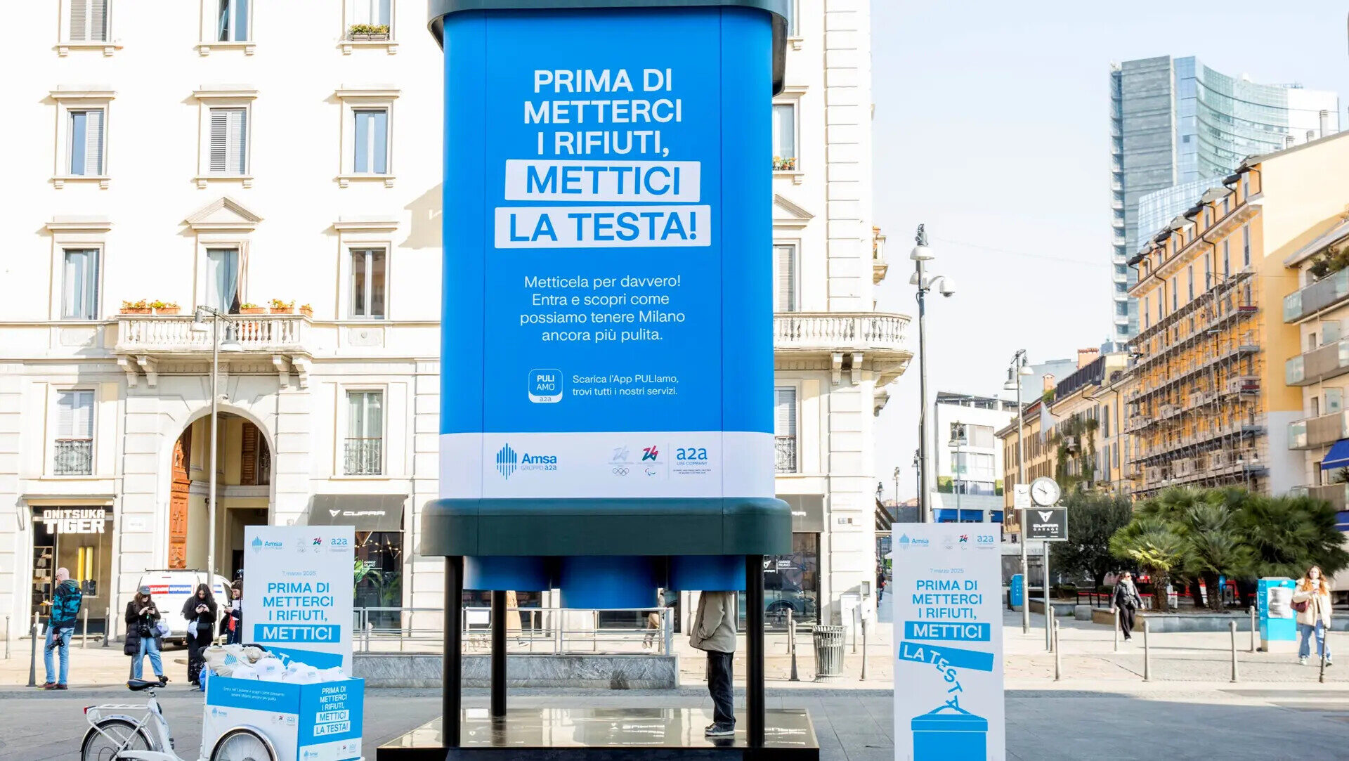 A tal proposito, fino a giovedì 13 marzo 2025, Piazza XXV Aprile ospiterà un’installazione interattiva dalle fattezze di un enorme contenitore per i rifiuti alto circa 7 metri, dentro il quale i cittadini potranno letteralmente “mettere la testa” per guardare un video che mostrerà loro cosa può essere gettato all’interno dei cestini stradali e cosa invece no.