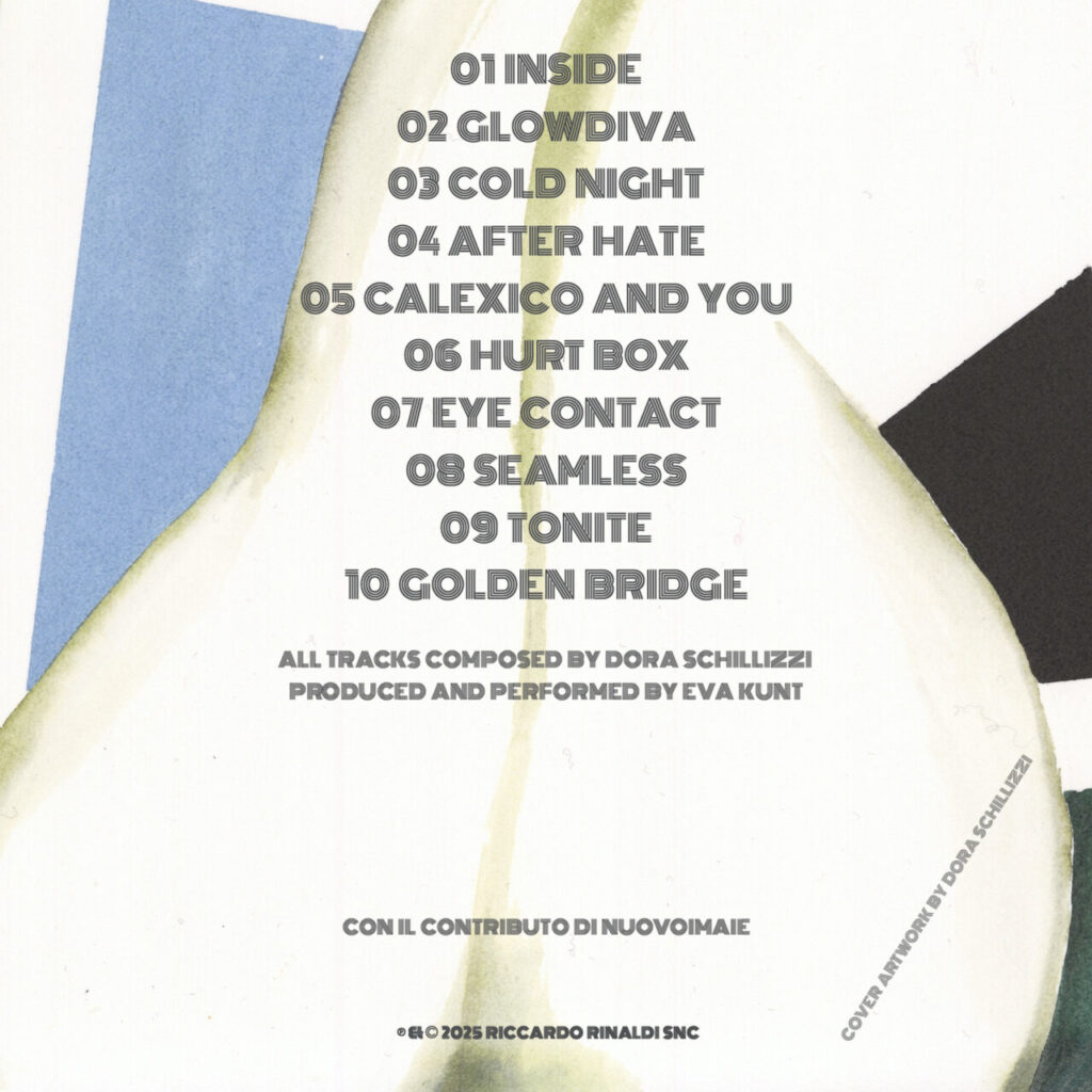 Quando Eva ha pensato il brano “Cold Night” sembra che avesse in mente l’immagine di bottiglie di plastica abbandonate sul ciglio di una strada. Si può provare pietà anche per questi oggetti così vituperati? Certo che sì! In ogni caso c’è ottimismo nella visione di Eva. Abbiamo ancora tempo per rimettere insieme i pezzi (la copertina del CD li simboleggia) per ritrovare grazie alla creatività e a occhi nuovi (sempre quelli, un po’ fantasmatici, della copertina) l’equilibrio perduto. Ce lo auguriamo di cuore con lei.