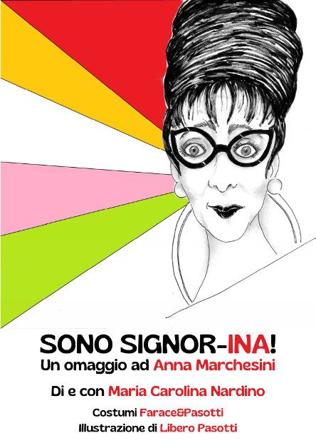 Lo spettacolo andrà in scena venerdì 19 e sabato 20 settembre alle ore 20.30 presso Alta Luce Teatro (Alzaia Naviglio Grande 190, Milano). SONO SIGNOR-INA! – Un omaggio a Anna Marchesini – Di e con Maria Carolina Nardino – Costumi di Farace&Pasotti – Illustrazione di Libero Pasotti