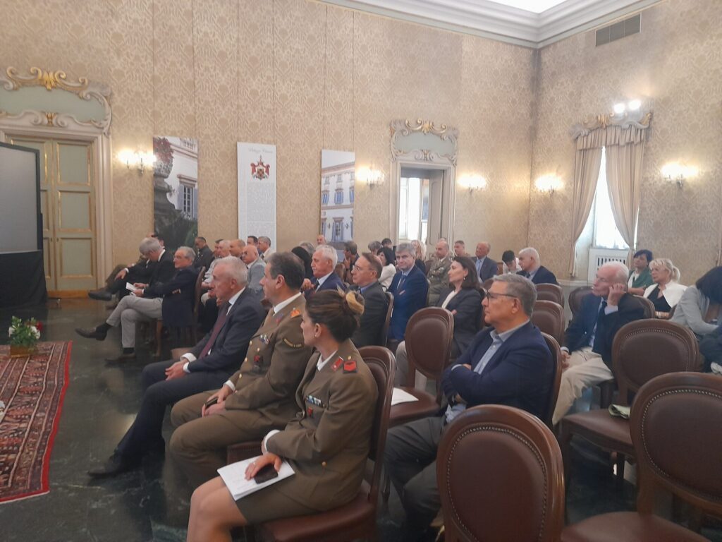 Infine dopo tutti gli interventi, il Generale di Brigata Carmine Sepe, ha riferito in breve anche della storia del luogo cui si è svolto il convegno, un palazzo seicentesco degli inizi del 1700, rimaneggiato una seconda volta fra il 1775 ed il 1779. presentando anche l’immagine riportata sul plafone posto in alto della sala Umberto I, infine ha ringraziato i partecipanti ed in particolare gli oratori che hanno messo in evidenza l’attuale momento geo politico e ognuno di noi deve essere promotore della ricerca per la pace.