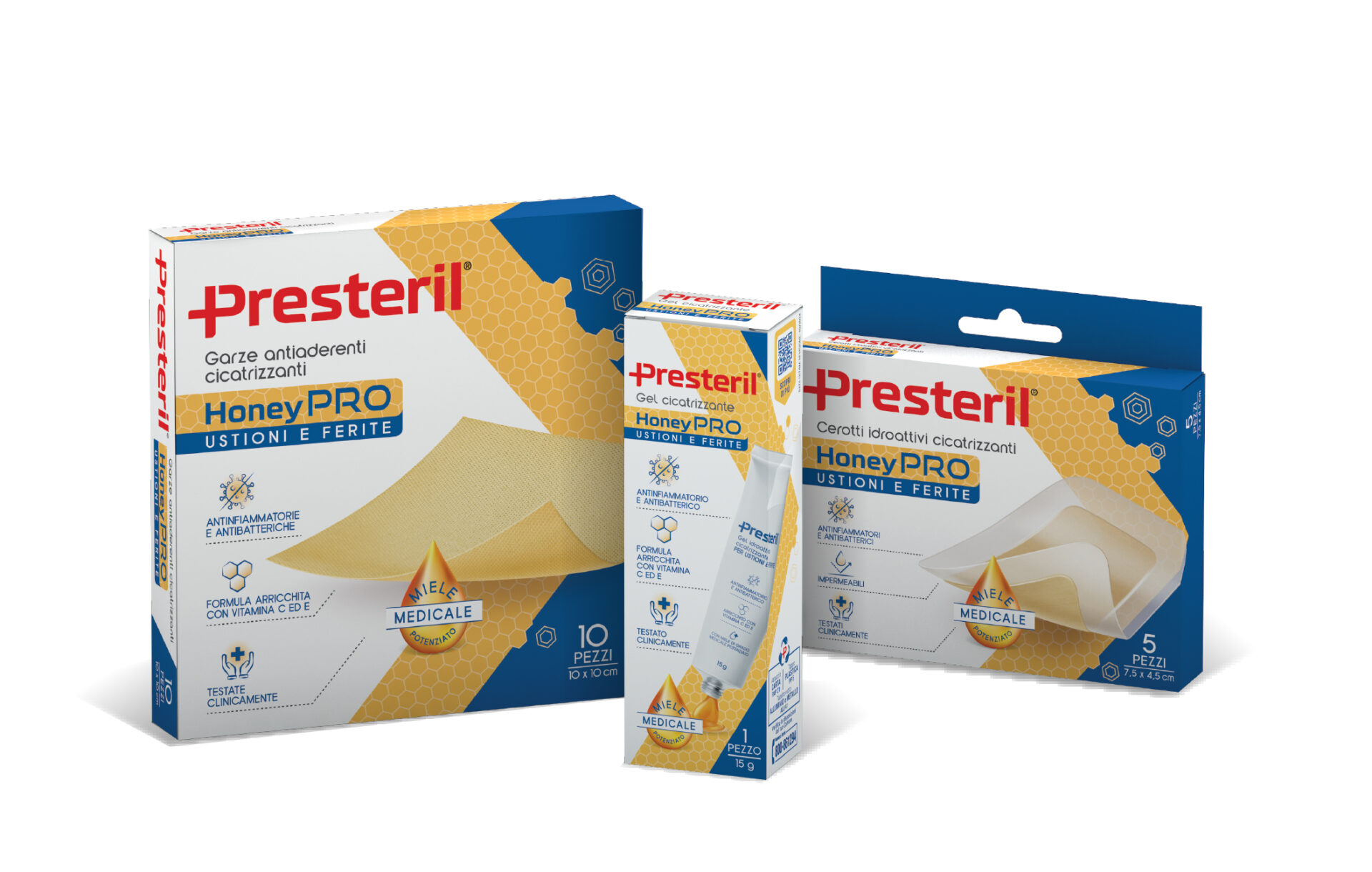 …una linea di medicazione dalla formulazione innovativa a base del miele potenziato, per una cicatrizzazione rapida di ustioni e ferite.