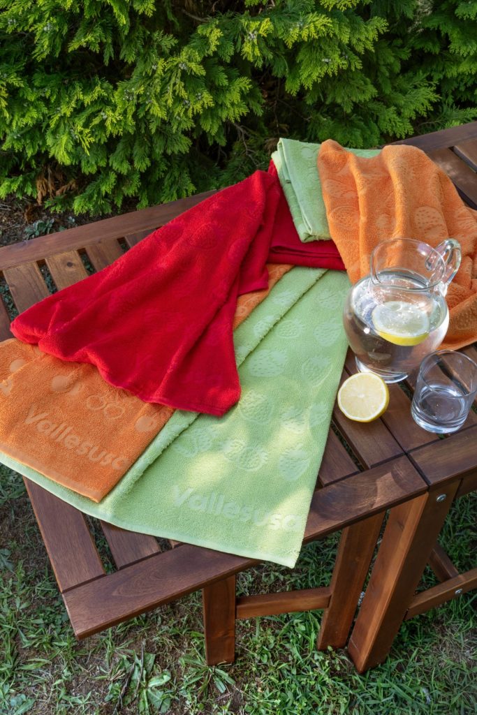 Vallesusa In Cucina amplia la propria proposta con i nuovi asciugapiatti in spugna jacquard, espressione di qualità, stile e funzionalità. La collezione si articola in tre famiglie: Frutti Rossi (Cherry e Strawberry), Vegetables (Pomodoro, Limoni, Pasta, Peperonata, Spremuta, Ciliegino) e Kitchen (Posate, Tazze, Caffè A, Caffè B, Marmellata e Milk).